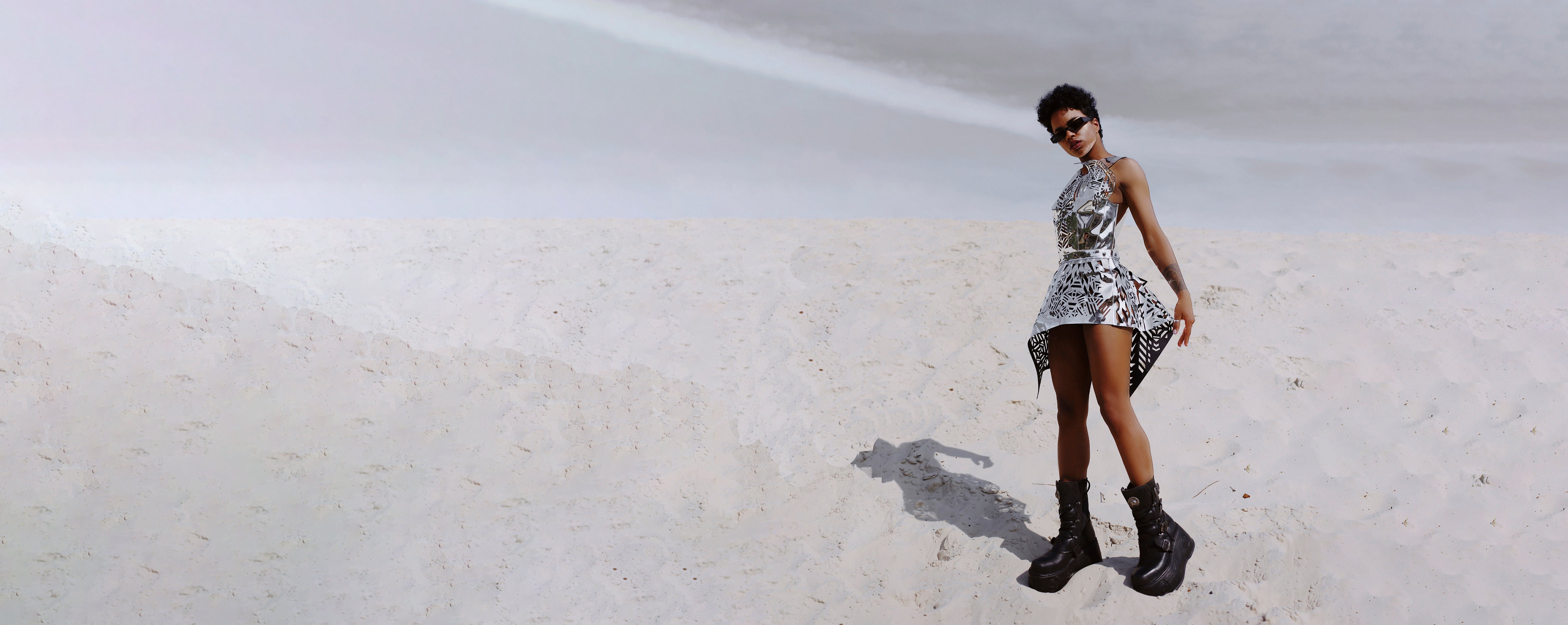 collections to be highly functional, based on modular designs so that you can curate your own ensemble for any specific occasion. Utilizing a unique laser cutting technology, even in the desert, you can feel cool and light while looking like a mirage nymph.